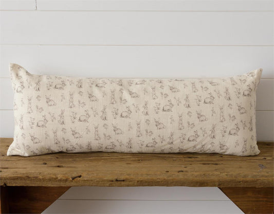 Rabbit and Wildflowers Lumbar Pillow