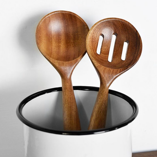 Handcrafted Olive Wood Long Handle Measuring Spoons Set