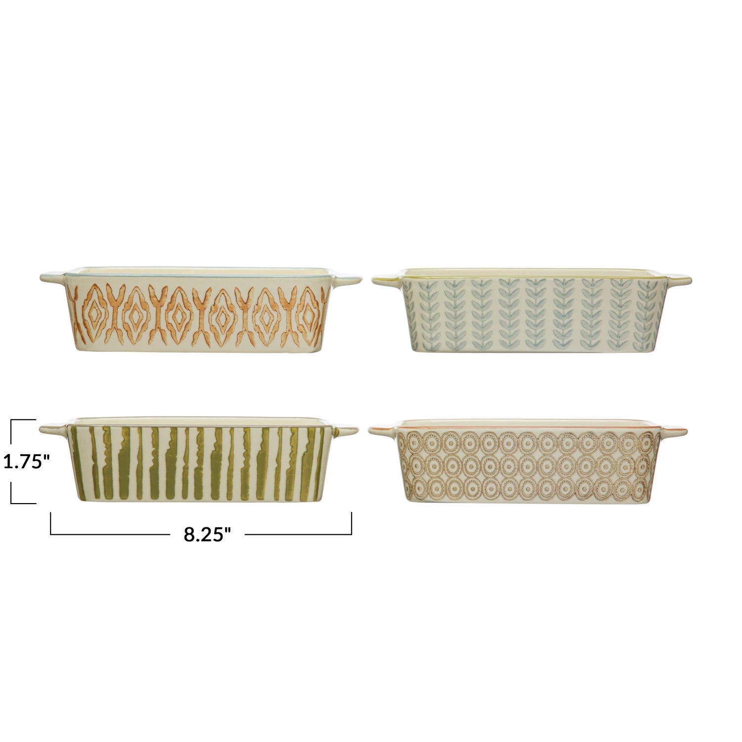 8-1/4"L x 4-3/4"W x 1-3/4"H 2-1/2 Cup Hand-Stamped Stoneware Baker w/ Pattern, Multi Color, 4 Styles