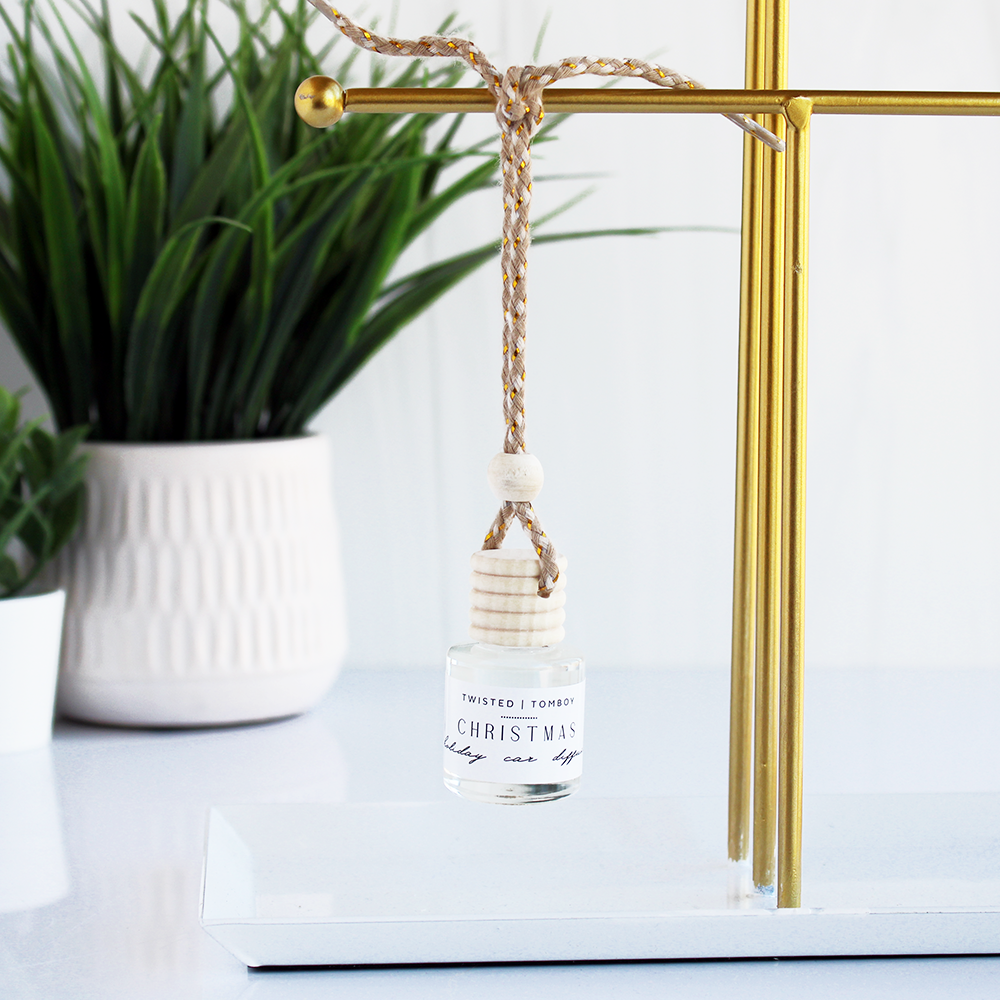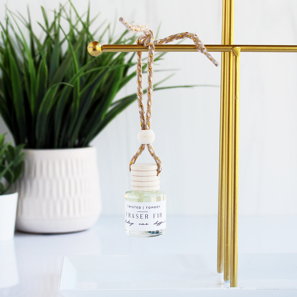 At last! Our long-awaited car diffusers are here per your request! These cute lil' guys hang right on your rearview mirror (also great to hang in small spaces like a closet!) These make the perfect quick gift, stocking stuffer, etc. Our diffuser base is non-toxic and mixed with phthalate free fragrances and/or essential oil blends. Each diffuser is in a glass container with the lid acting as the reed.