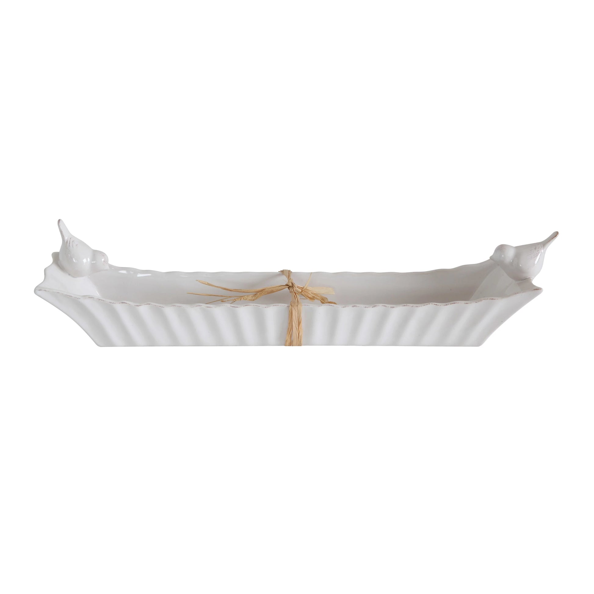 Keep your crackers neat and organized the next time you serve them. This long white dish keeps them lined up in a row.