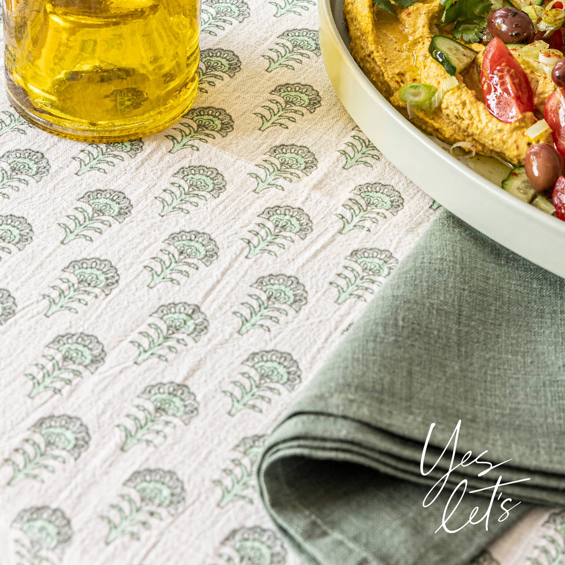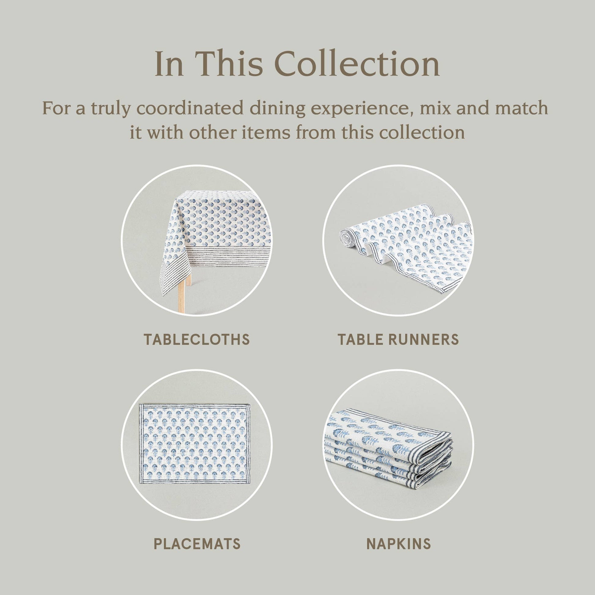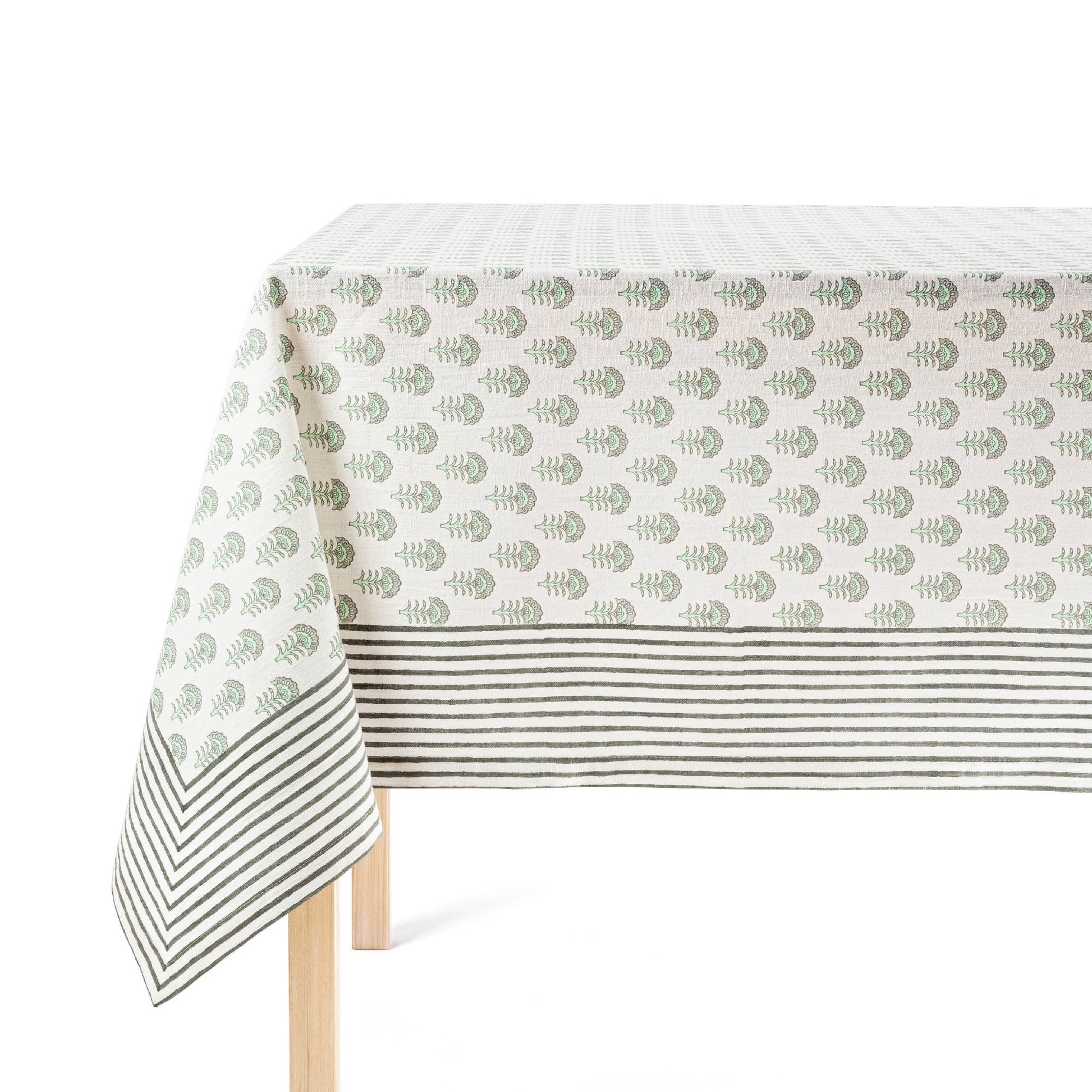 MIX-AND-MATCH: All our hand-screened tablecloths use the same color palette to easily blend with all of our collections. Feel free to mix our prints with our woven stripes or even our 100% solid linens to create your own personal style.