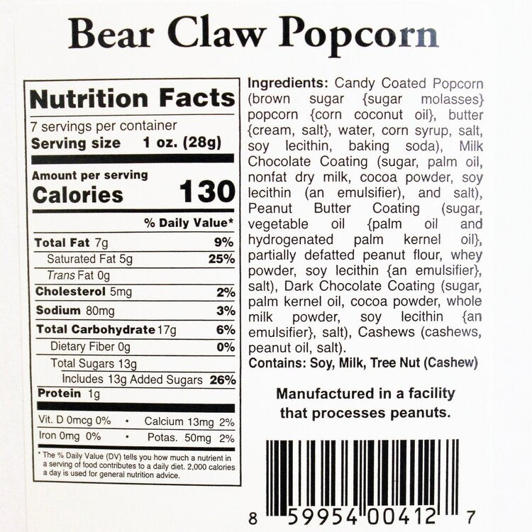 Bear Claw | Caramel Corn, dark, milk, and peanut butter chocolates topped with cashew bits and a touch of sea salt.