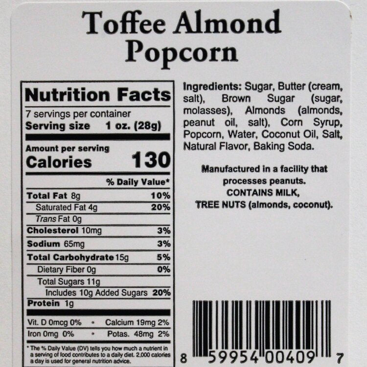 Toffee Almond | Butter Toffee glazed popcorn loaded with plenty of crunchy almonds. Second to none!