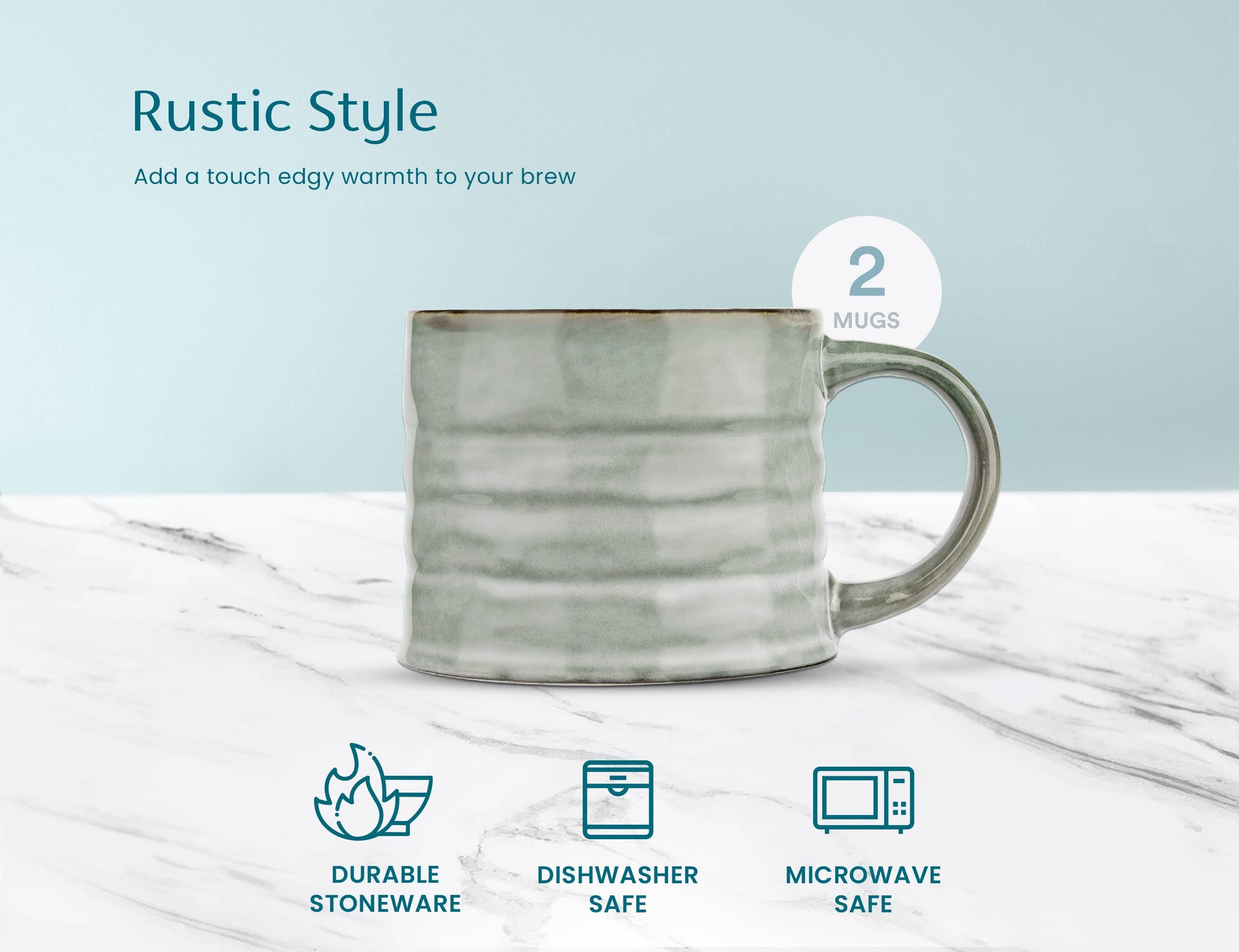 Add a touch of edgy warmth to your morning brew. Each coffee mug in this rustic set is made from durable stoneware with a glossy finish. Perfect for enjoying tea, coffee, cocoa, juices and more!