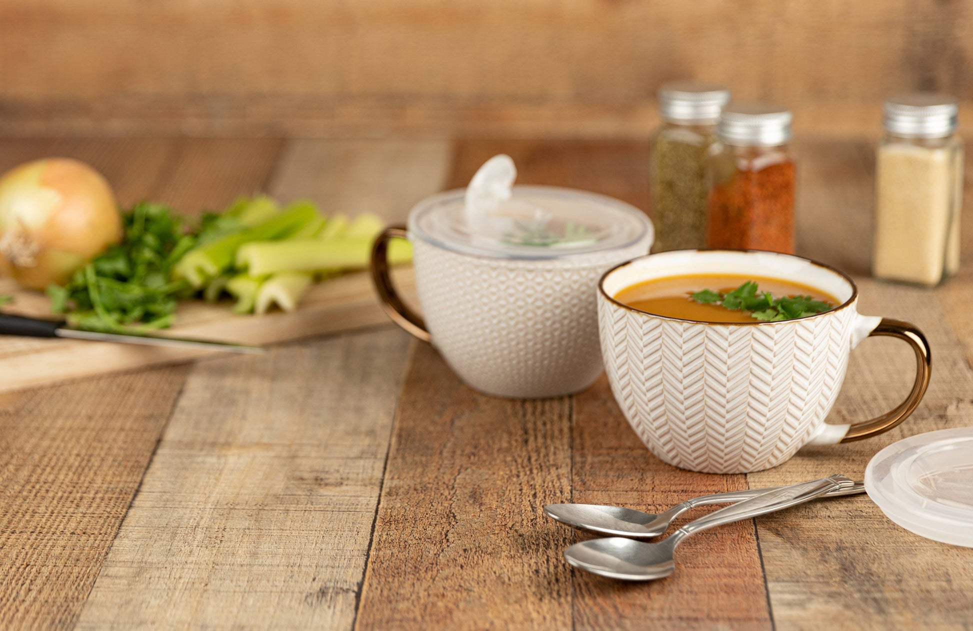 Kook Ceramic Soup Mugs with Lids, 18 oz