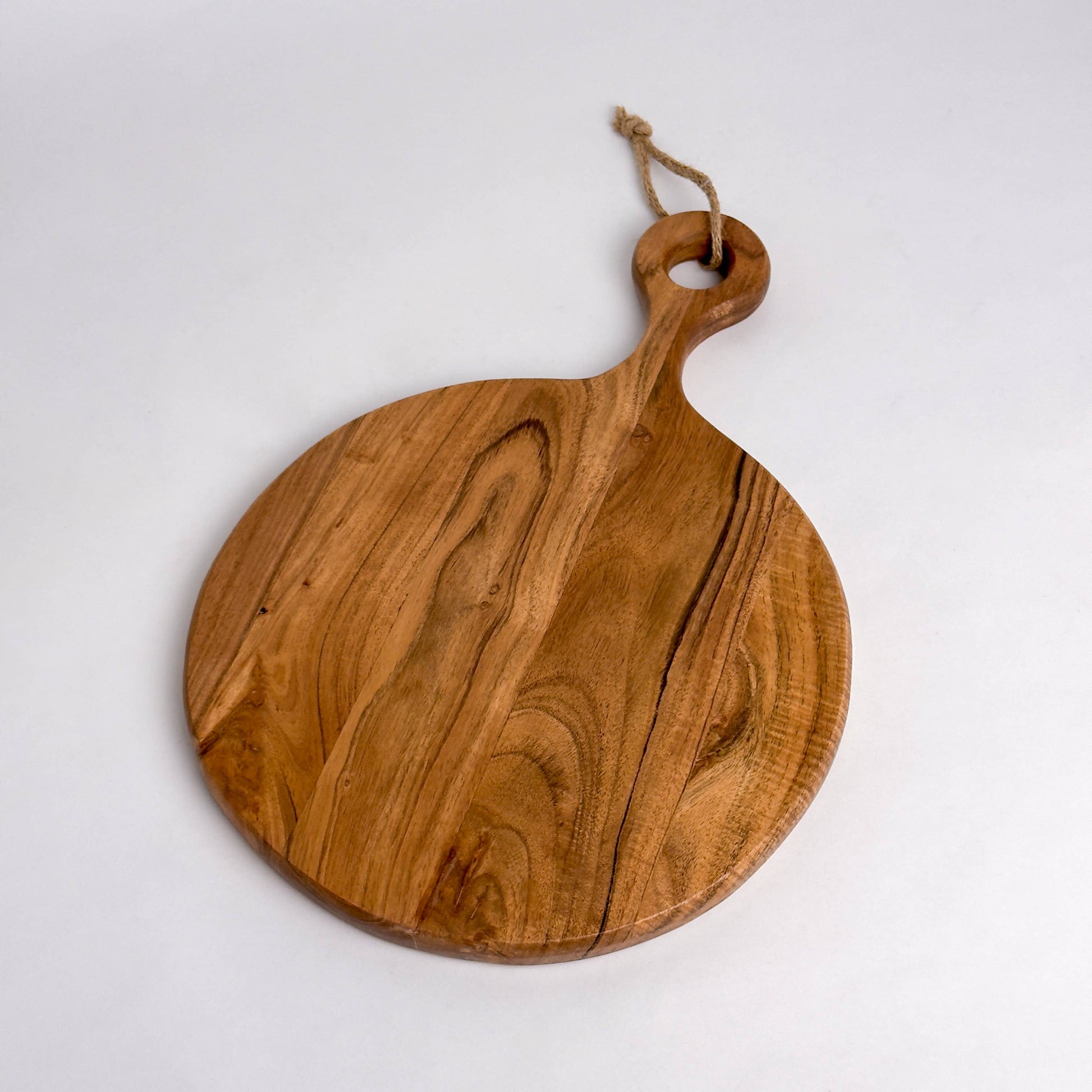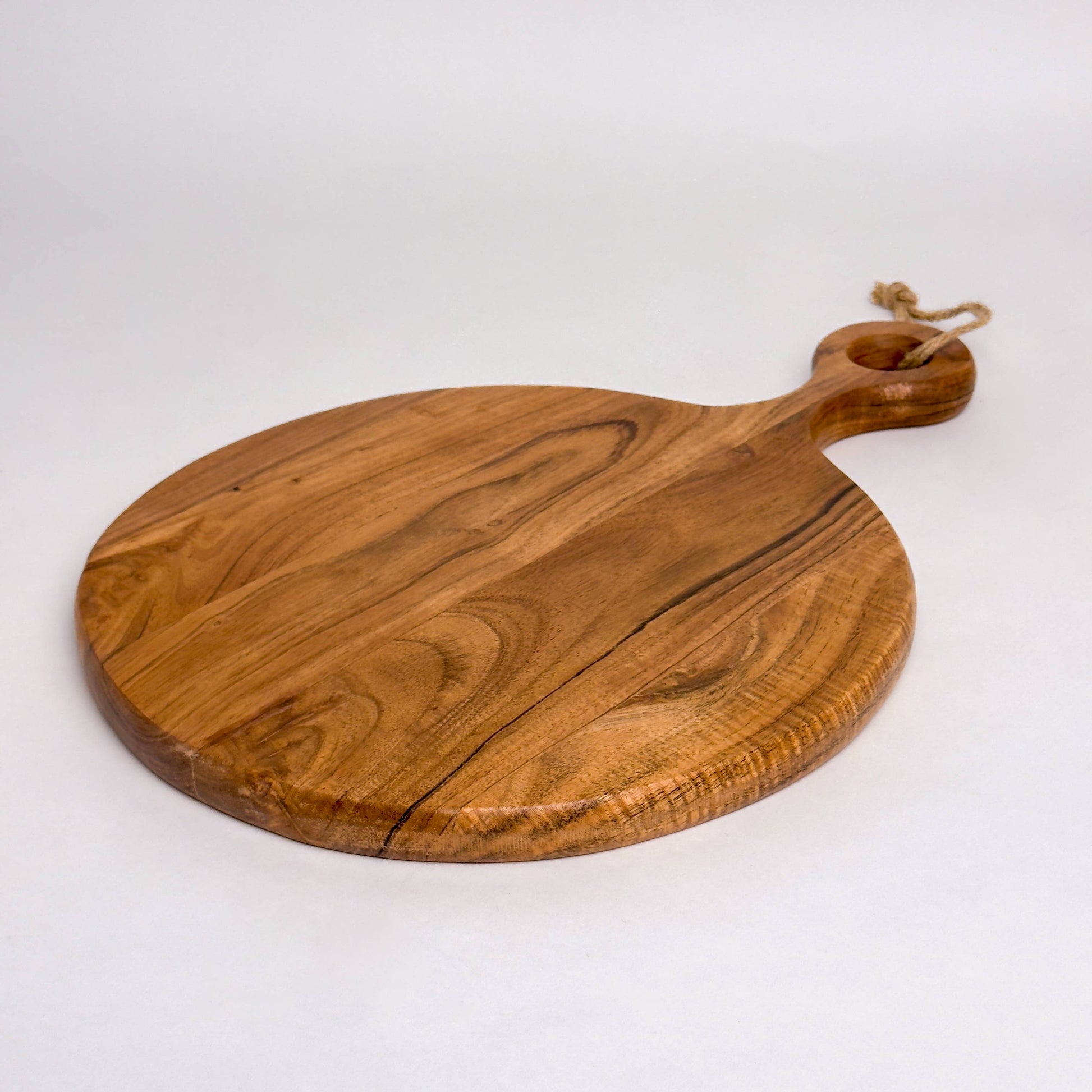 The LG Round Acacia Wood Cutting/Cheese Board with Handle is a versatile and stylish addition to any kitchen. Crafted from high-quality acacia wood, this board is not only durable but also adds a touch of natural beauty to your countertop. Its round shape provides ample space for cutting, chopping, and slicing a variety of ingredients, while the built-in handle allows for easy transportation and serving. Whether you're preparing a charcuterie spread or simply slicing fruits and vegetables, this cutting/cheese board is the perfect tool for any culinary task. Its smooth surface is gentle on knives, ensuring that your blades stay sharp for longer. With its sleek design and practical functionality, the LG Round Acacia Wood Cutting/Cheese Board with Handle is a must-have for any home chef or entertainer.