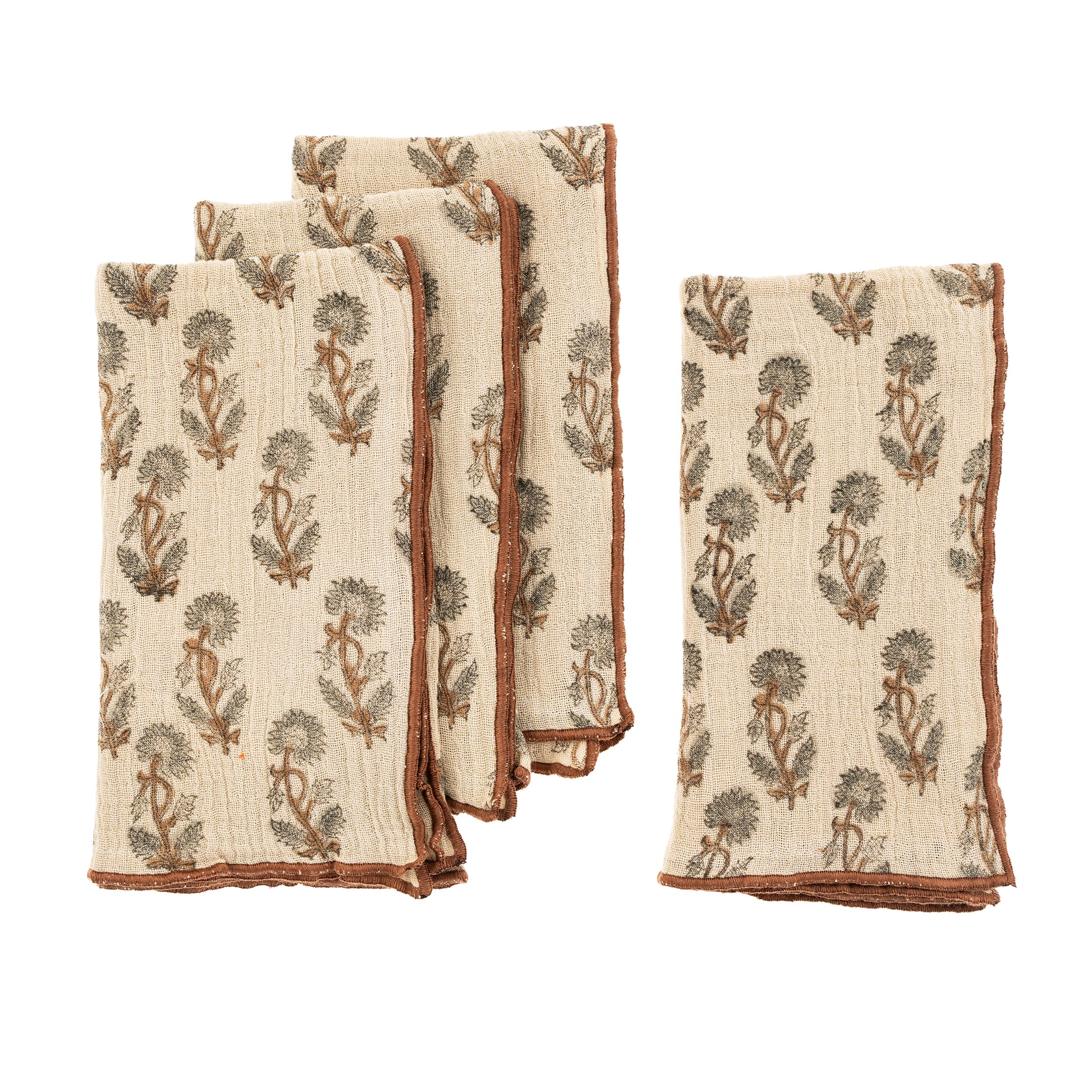 These block printed napkins display creativity and craftsmanship in every detail. Handmade from double-gauze crinkle cotton with traditional block-printed pattern and over-lock embroidered edges, they bring rich hues and beautiful patterns to your dining room styling. Machine Washable.