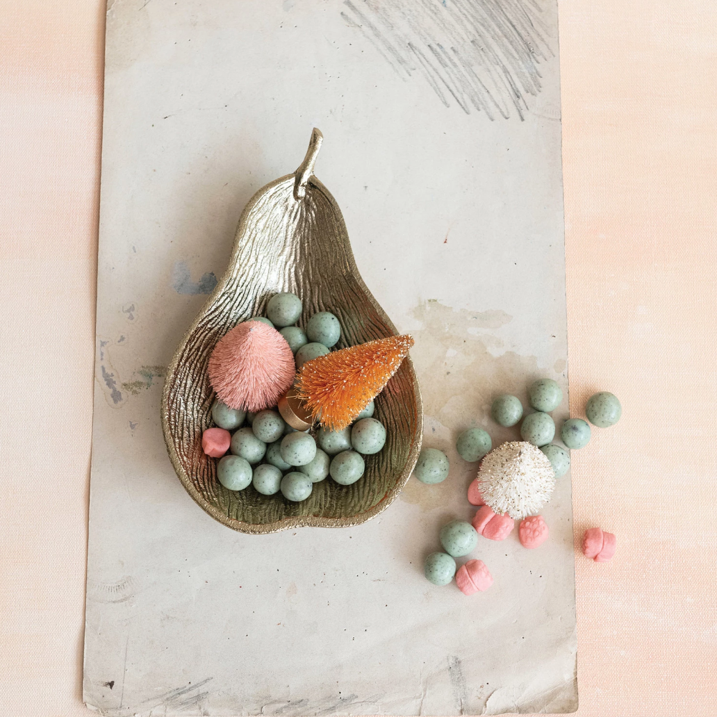 9-1/2"L x 6"W Cast Aluminum Pear Shaped Dish, Gold Finish
