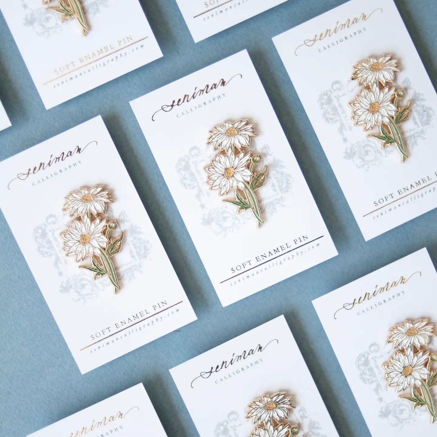 The perfect addition to your flower enamel pin collection and to personalize your bags, jeans, jackets, and pouches! Gold plating with a couple of butterfly clips.