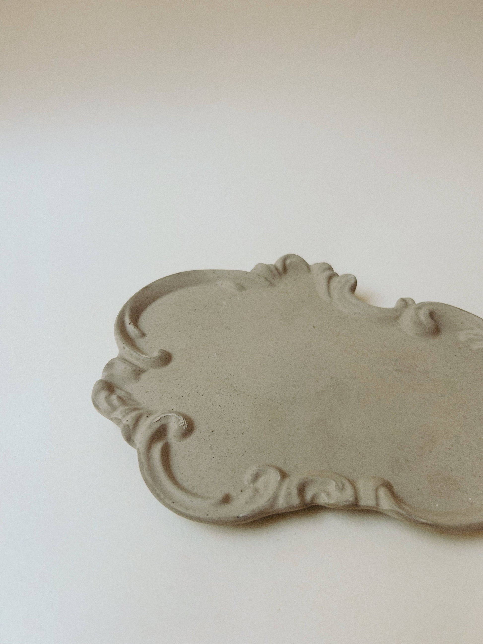Crafted with hand poured concrete and botanical powders, these trays are perfect for our bar soaps or to use as a trinket tray. The unique blend of natural materials not only adds an earthy charm to your bathroom, kitchen, or foyer but also helps to preserve the soap's natural oils as well as making an excellent tray for spare change, keys, etc.
