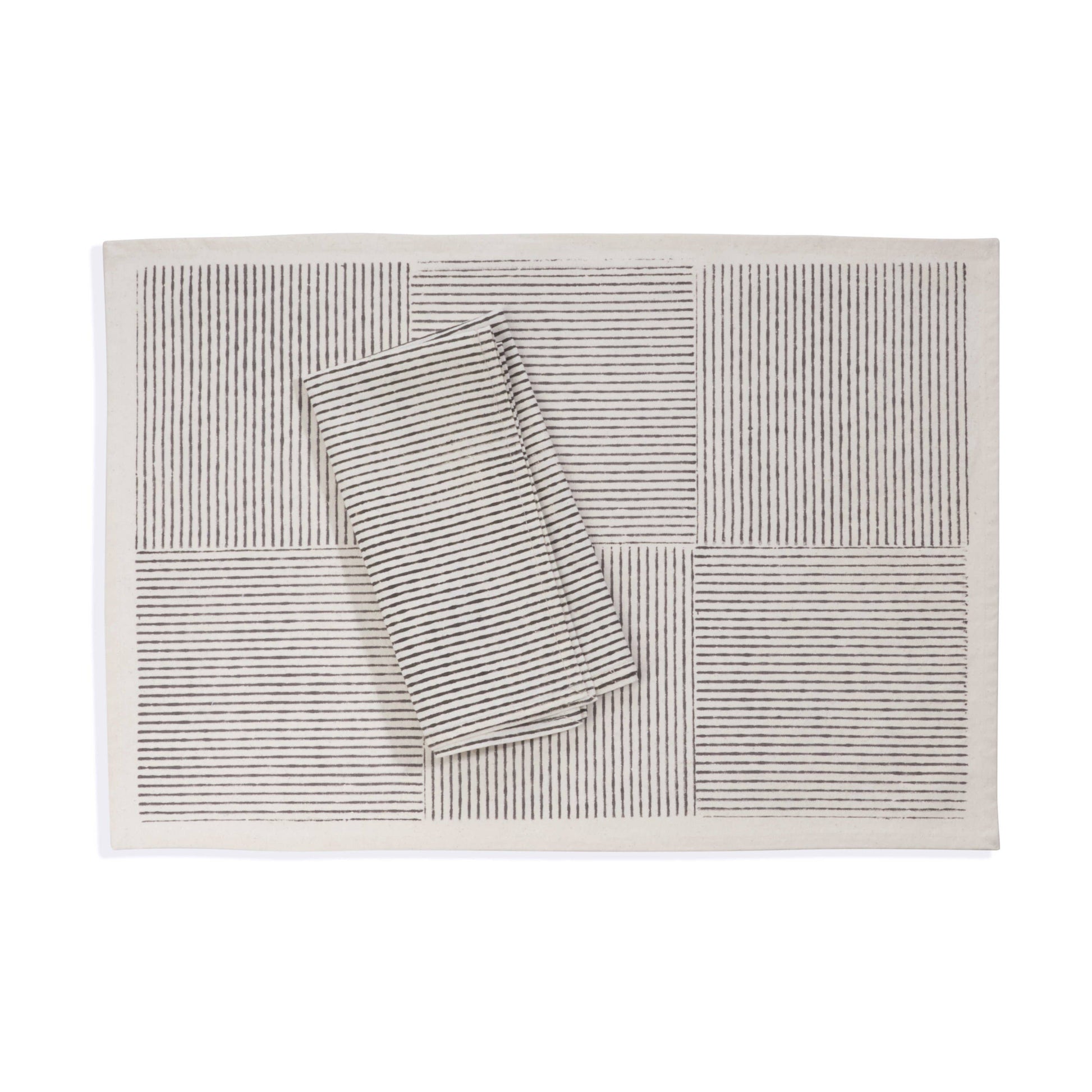 Size 14”x20” 100% kora (unprocessed & unbleached) cotton Hand block printed Contemporary motifs Azo-free, low-impact dyes Machine wash cold. Delicate cycle. Tumble dry low. Crafted by a community from Northern India, displaced from their ancestral land. Protect your dinner table from food stains and hot dinnerware or transform a drab table with one-of-a-kind block printed tablemats. These conversation pieces are exclusively designed by and for Sustainable Threads. Hand block printing is a labor-intensive process that involves carving designs on individual wooden blocks, to which dye is applied and stamped onto the fabric. Several dozen impressions are required to complete a single finished product. Enjoy this creation, made with a whole lot of patience and love! A Fair Trade product. Handmade by artisans in India.