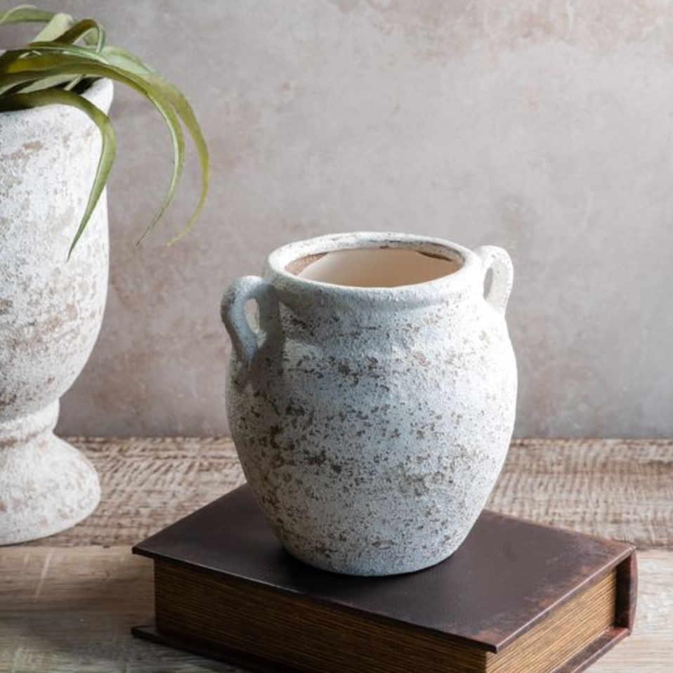 WHITE WASHED CERAMIC VASE w/Handes